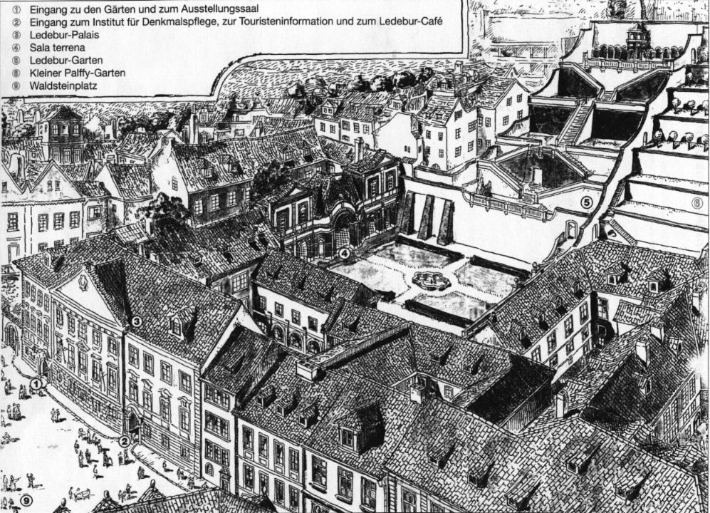 Ledeburgarten und der kleine Palffygarten wieder hergerichtet, rekonstruiert.